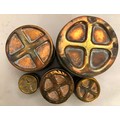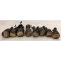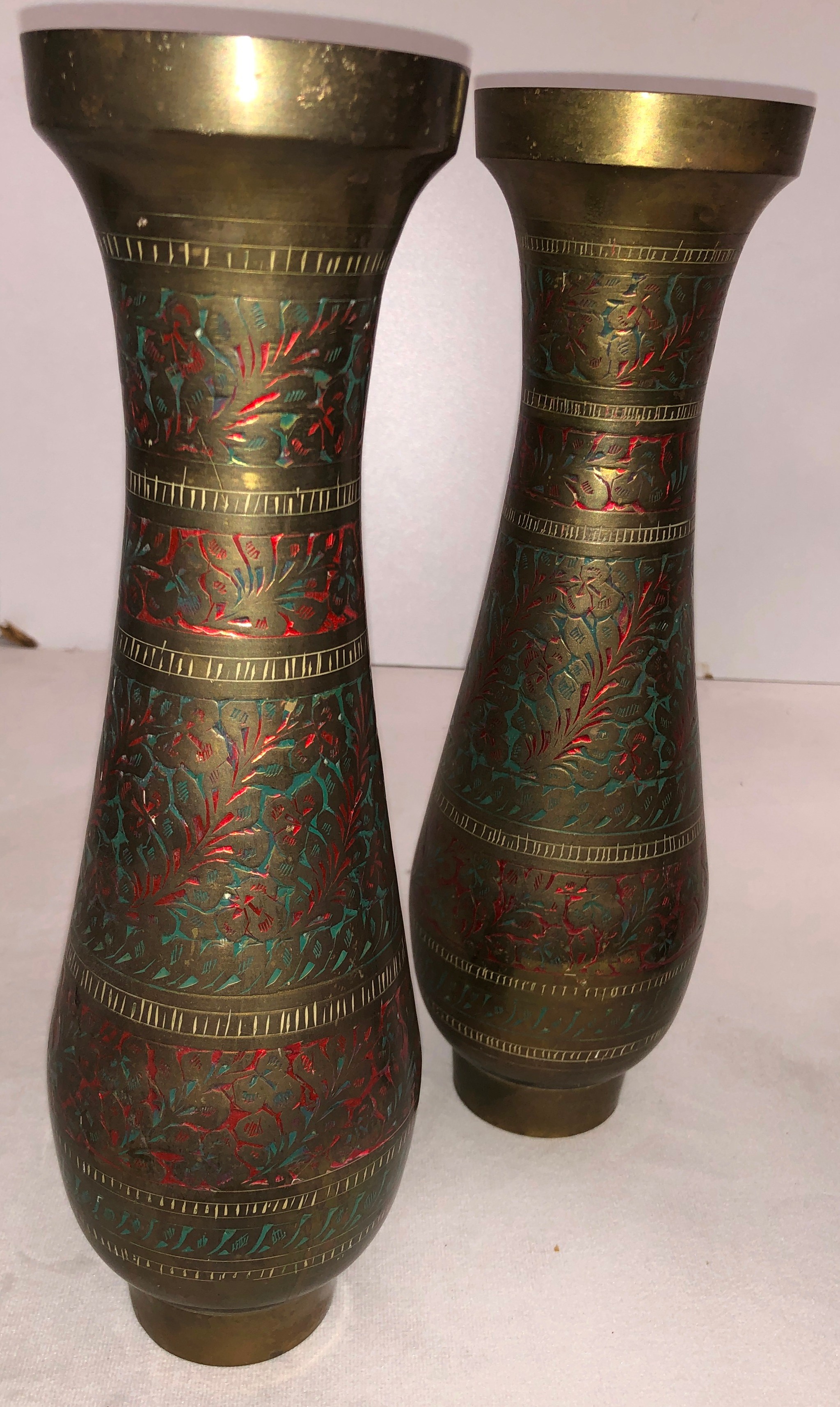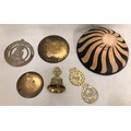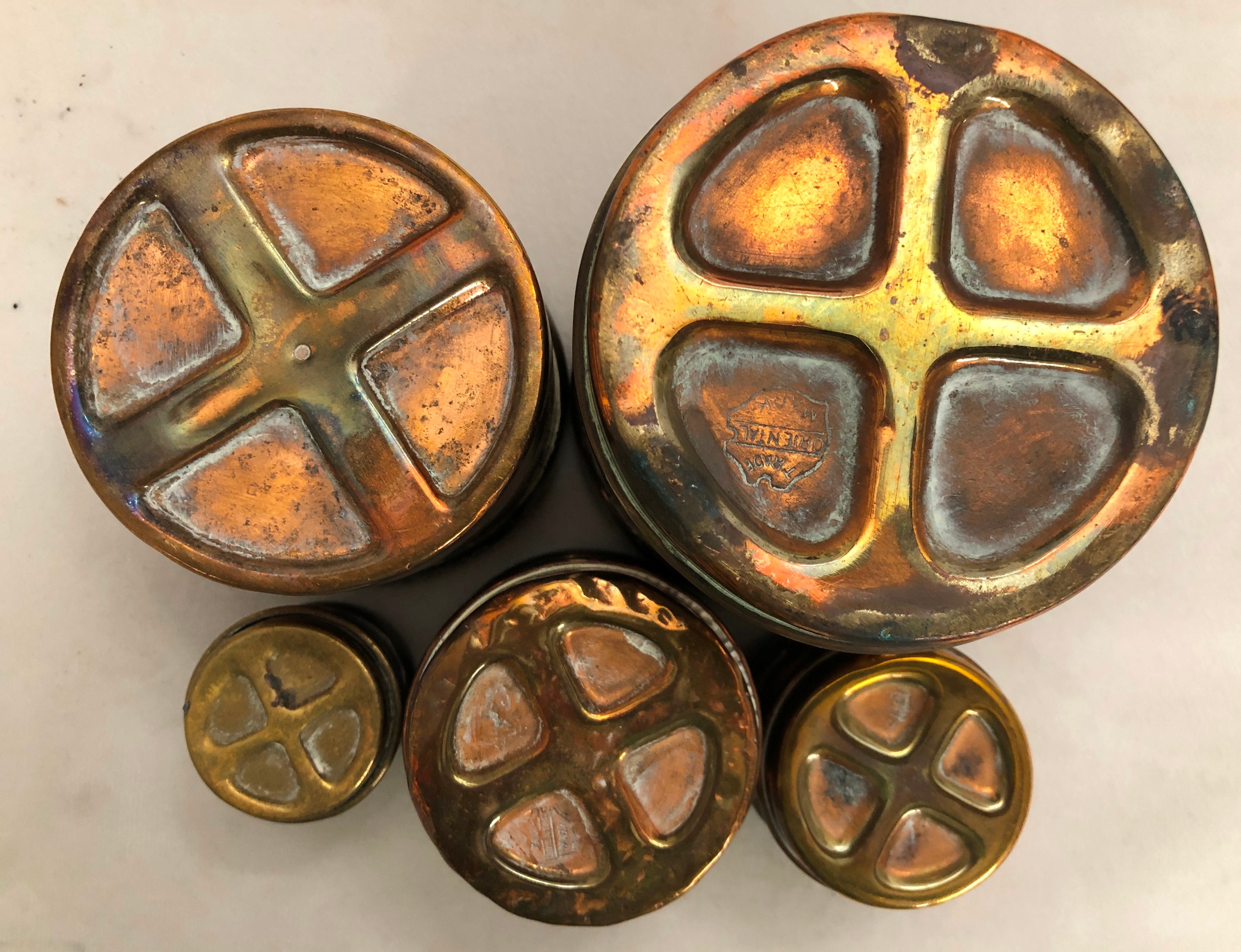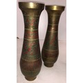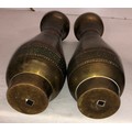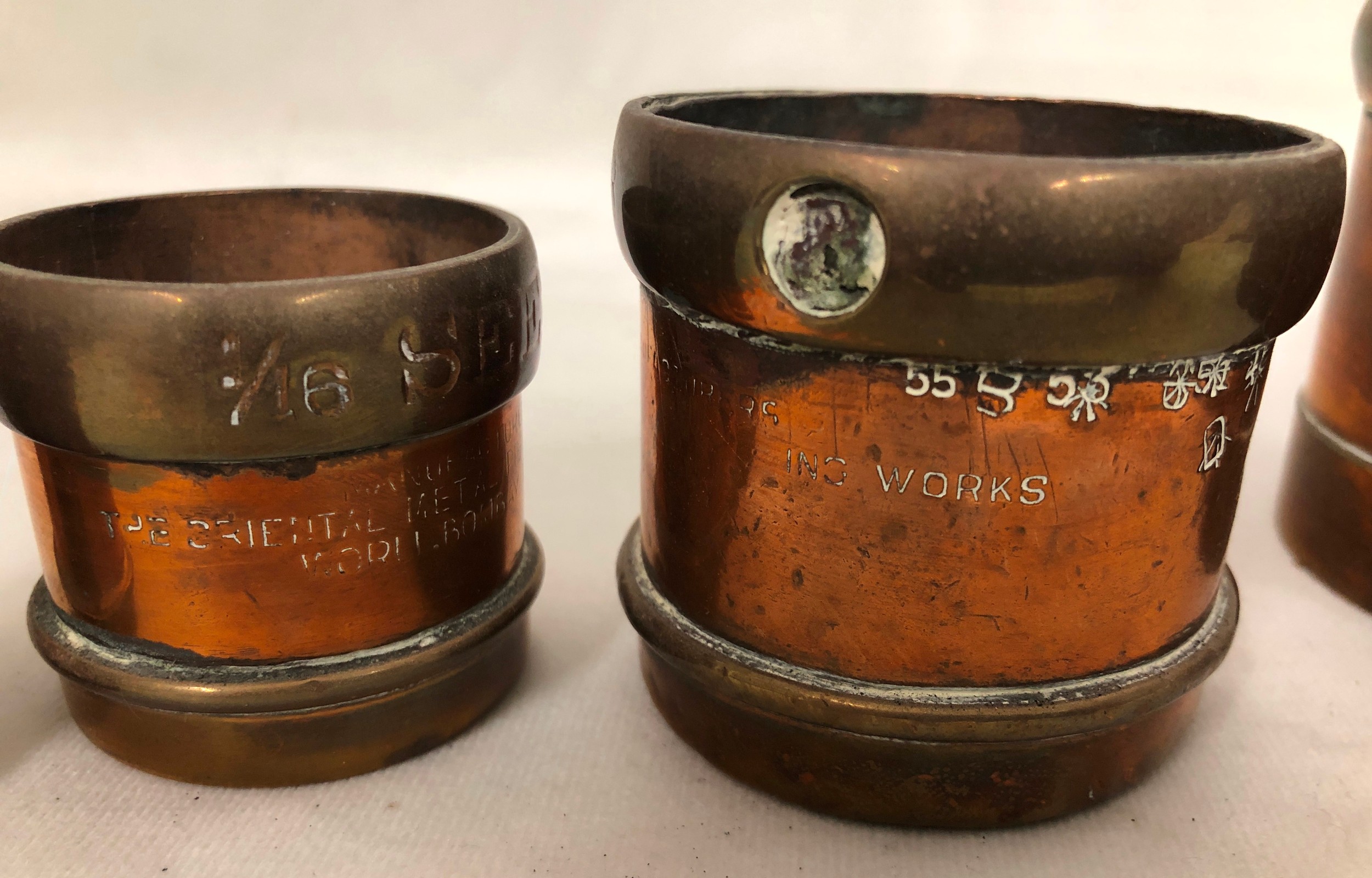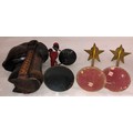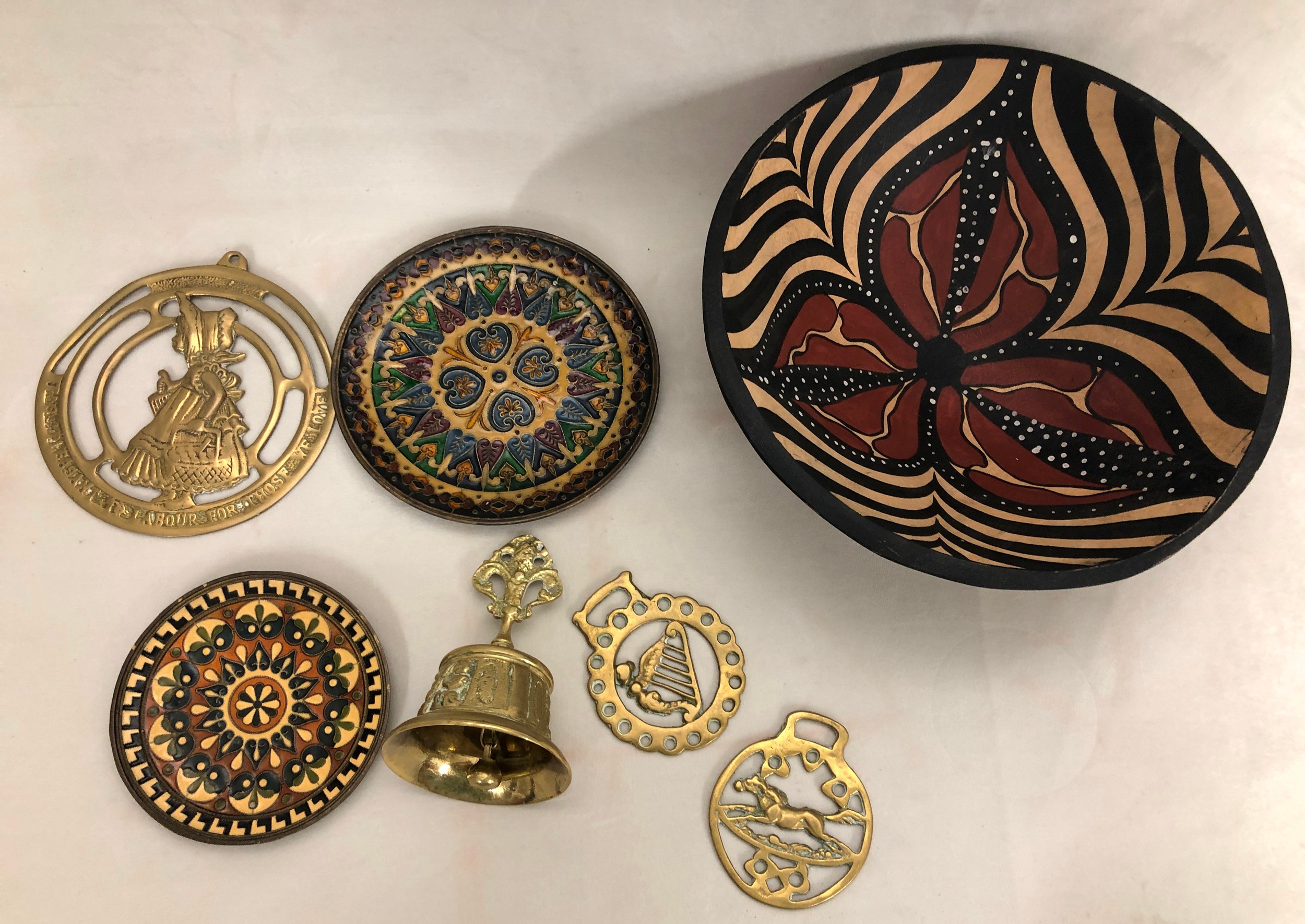 A collection of 8 Israeli miniature patinated brass biblical figurines each marked with label to base, David, Salome, Rachel, Ahasvero, Moshe, Shulamith, Esther and Josua, tallest 6.2cm high, a set of 5 copper and brass The Oriental Metal Pressing Works Bombay Inc measures from 1/2 Seer to 1/32, a pair of brass Indian candlesticks, 23cm high, a pair of Indian brass vases, 30.5cm high, various other brass , a metallic African female with a child, 27.5cm high, a craved wood African head, 22cm high etc.