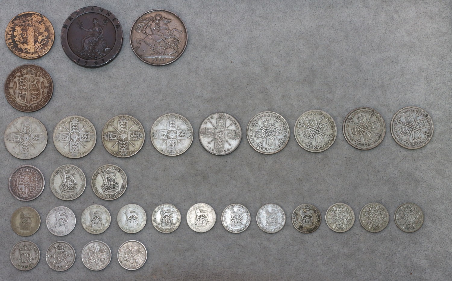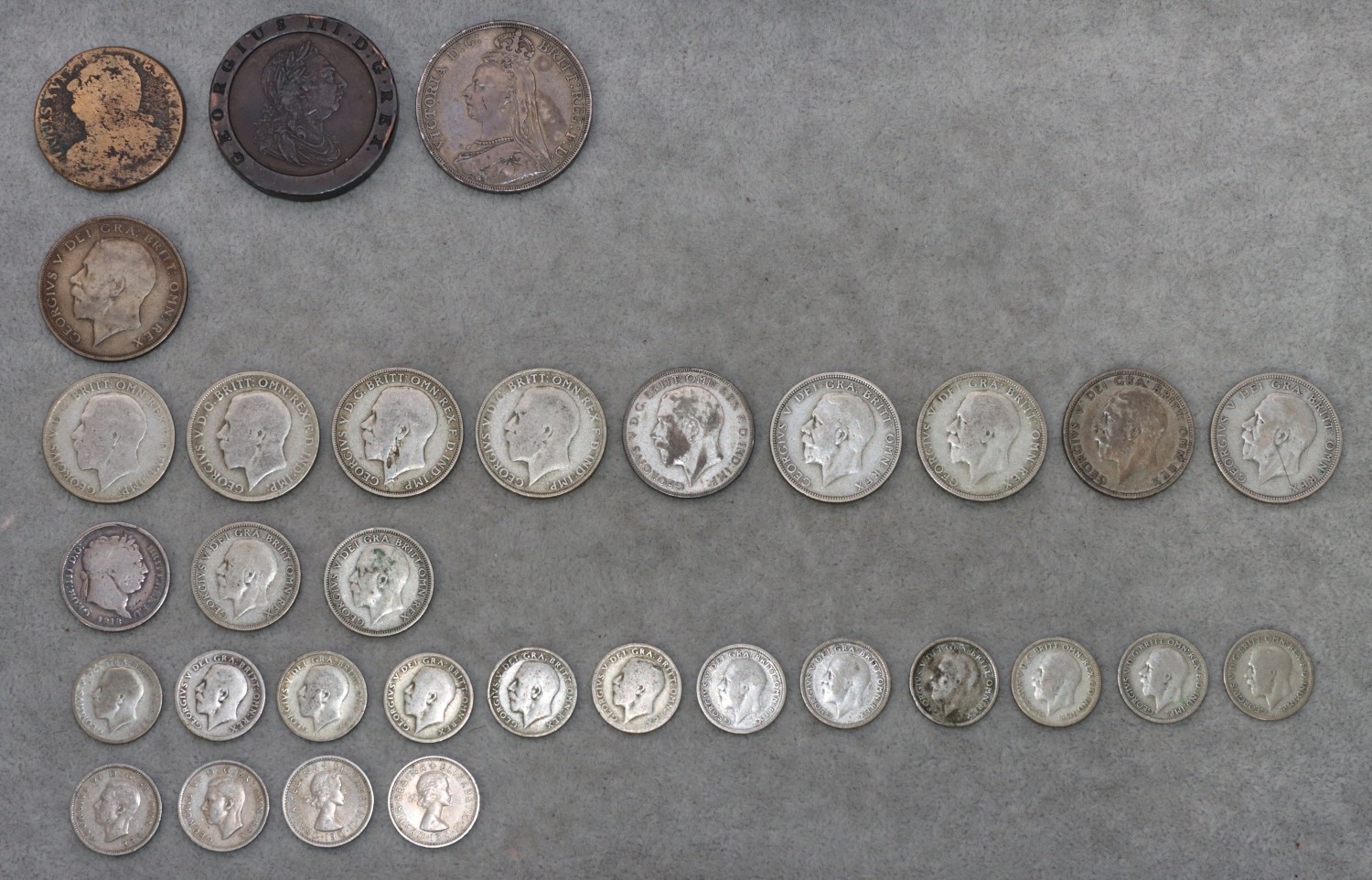 A Victorian silver Crown, 1889, an 18th Century Cartwheel 1797, a Louis XVI coin and a small quantity of various pre-1946 coins, weighable silver 199.7 grams