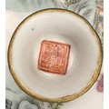 The pot and lid are in good condition. There is some wear to gilt on top edges of bowl and a small chip on finial of lid