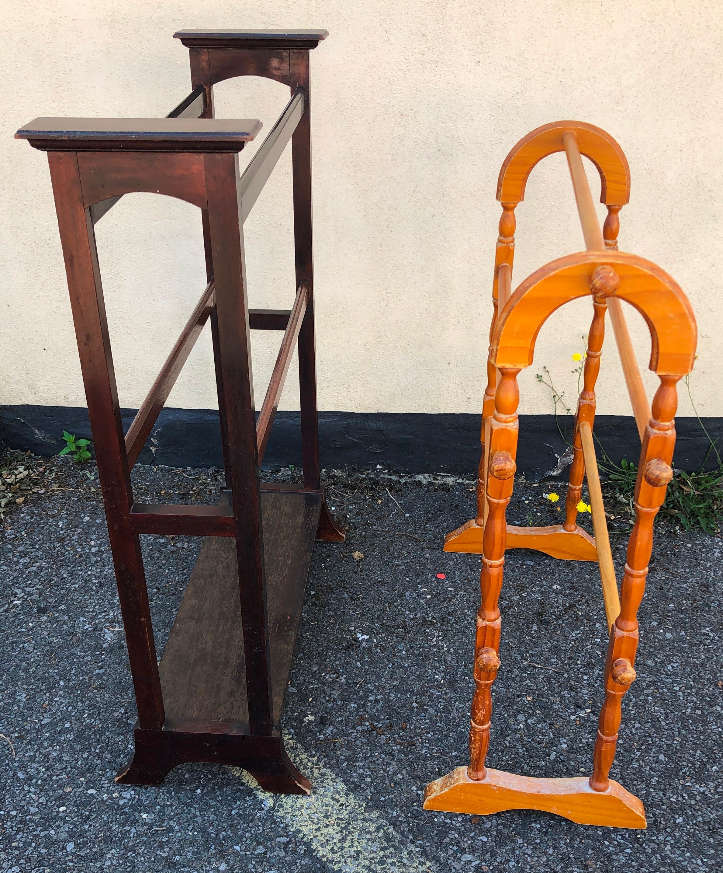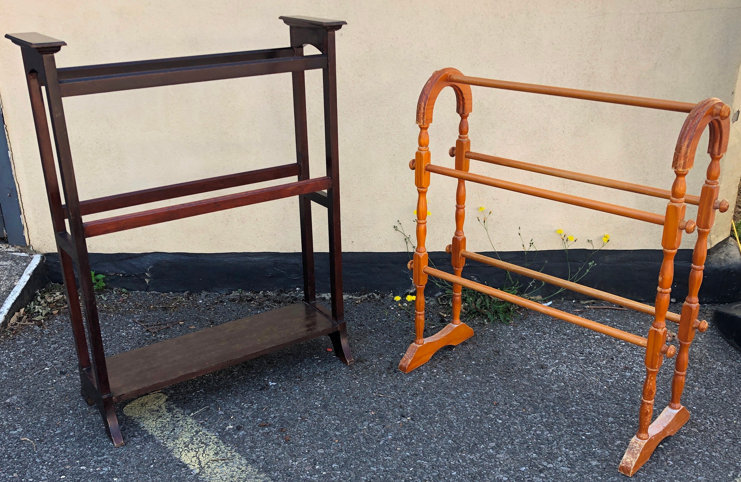 2 towel rails, tallest, 89cm high, 27.5cm deep, 69.5cm wide, smaller rail, 78.5cm high, 70.5cm wide, 30cm deep. (2)