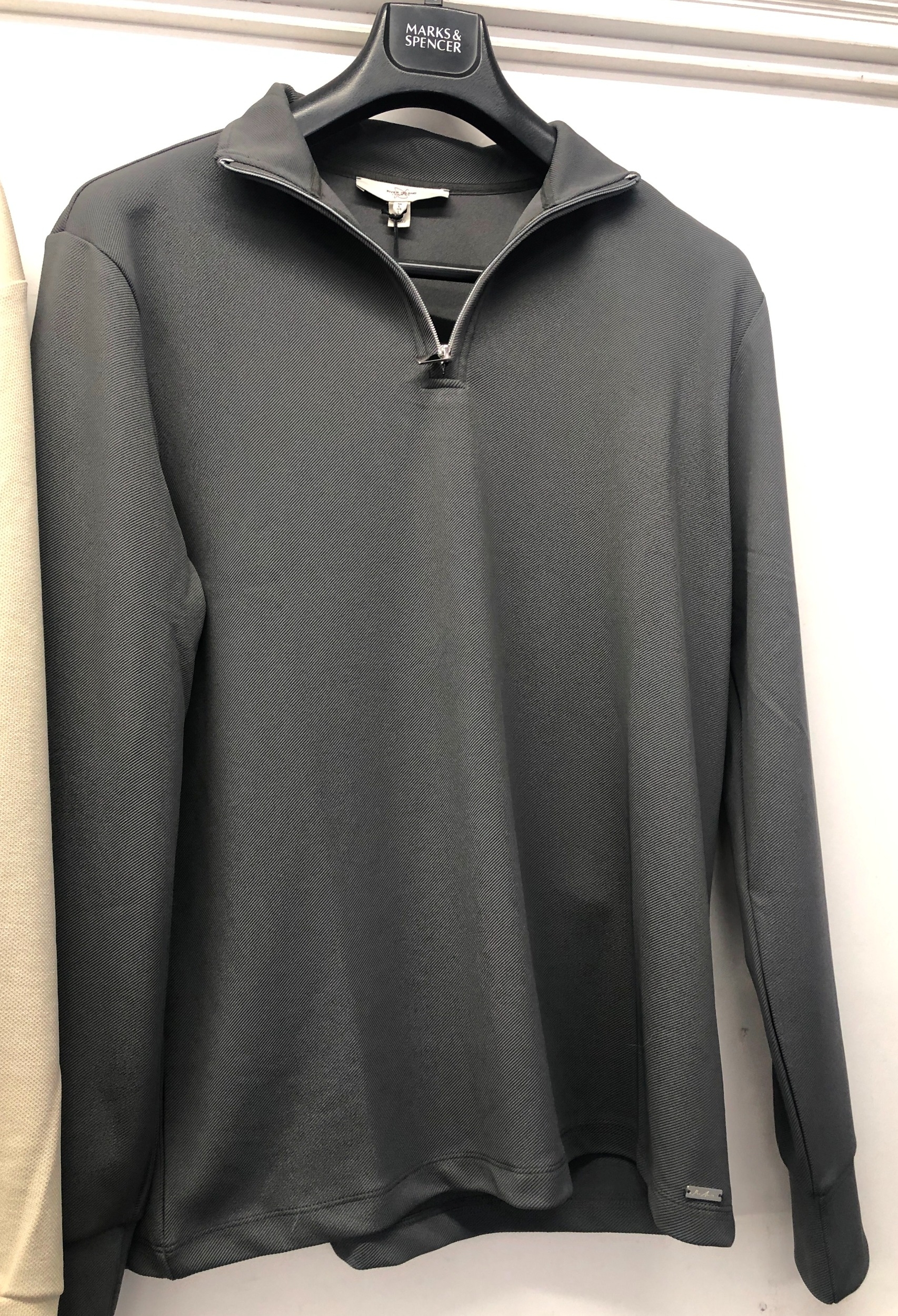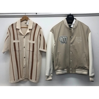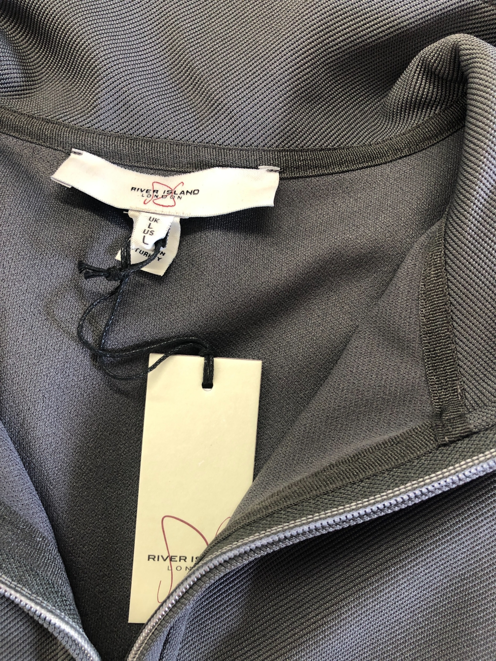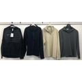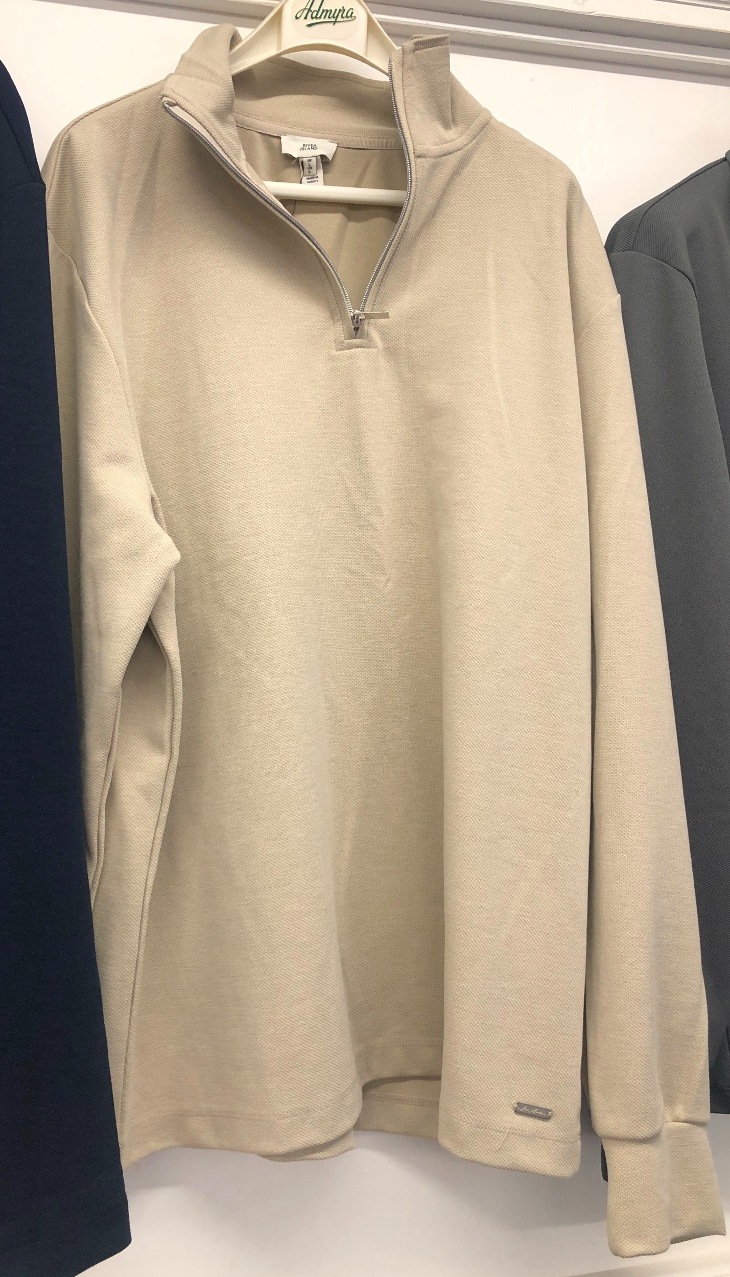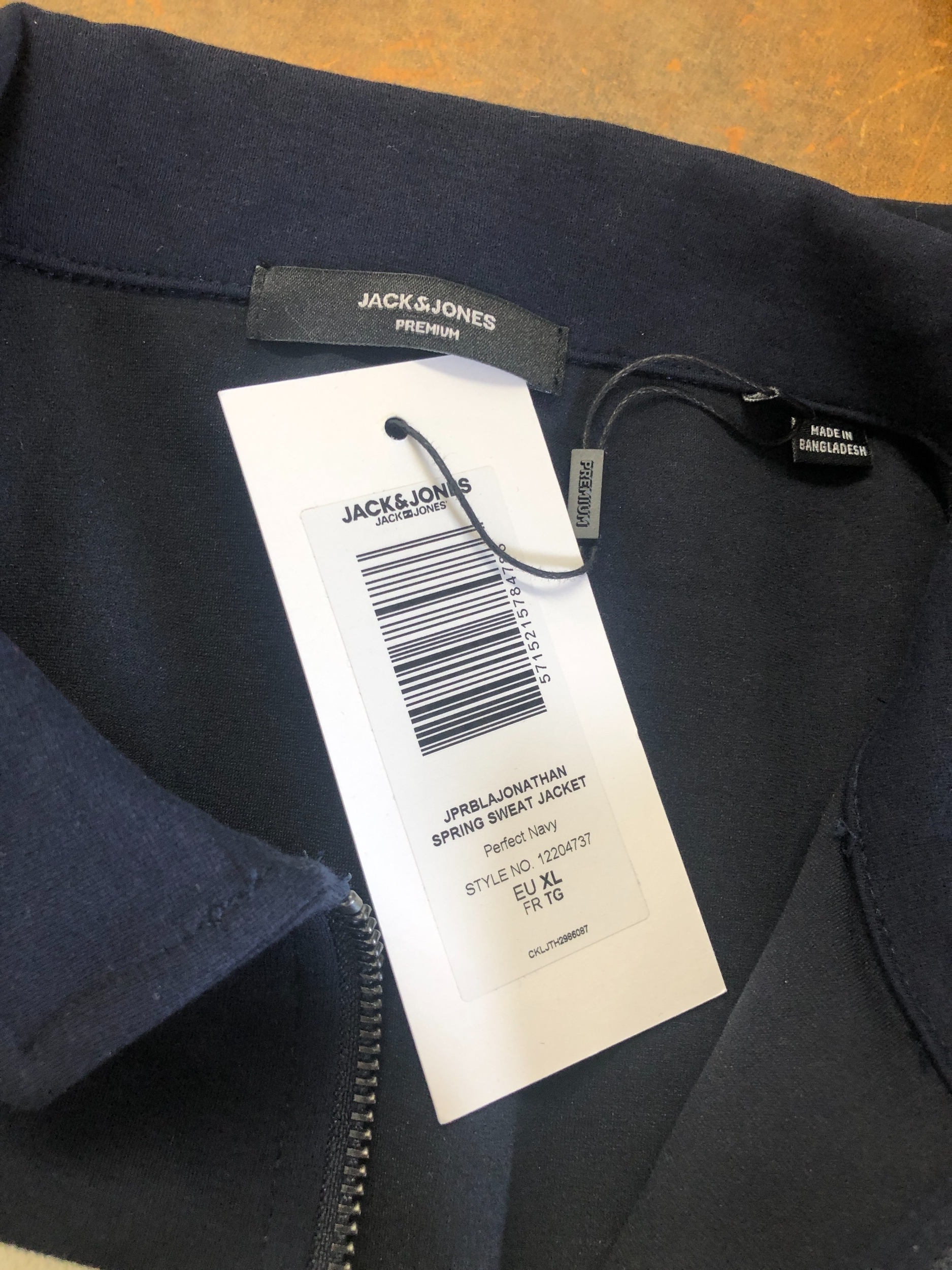 4 as new men's tops, all with retail tags. 2 River Island Long Sleeve Slim Fit Smart Twill Funnel Neck Quarter Zip Sweatshirts, colour Grey and Stone Size L, a Jack & Jones navy Spring sweat Jacket with full zip, size XL and a black Therma-Fit Nike Academy Winter 1/4 Zip Top, size L