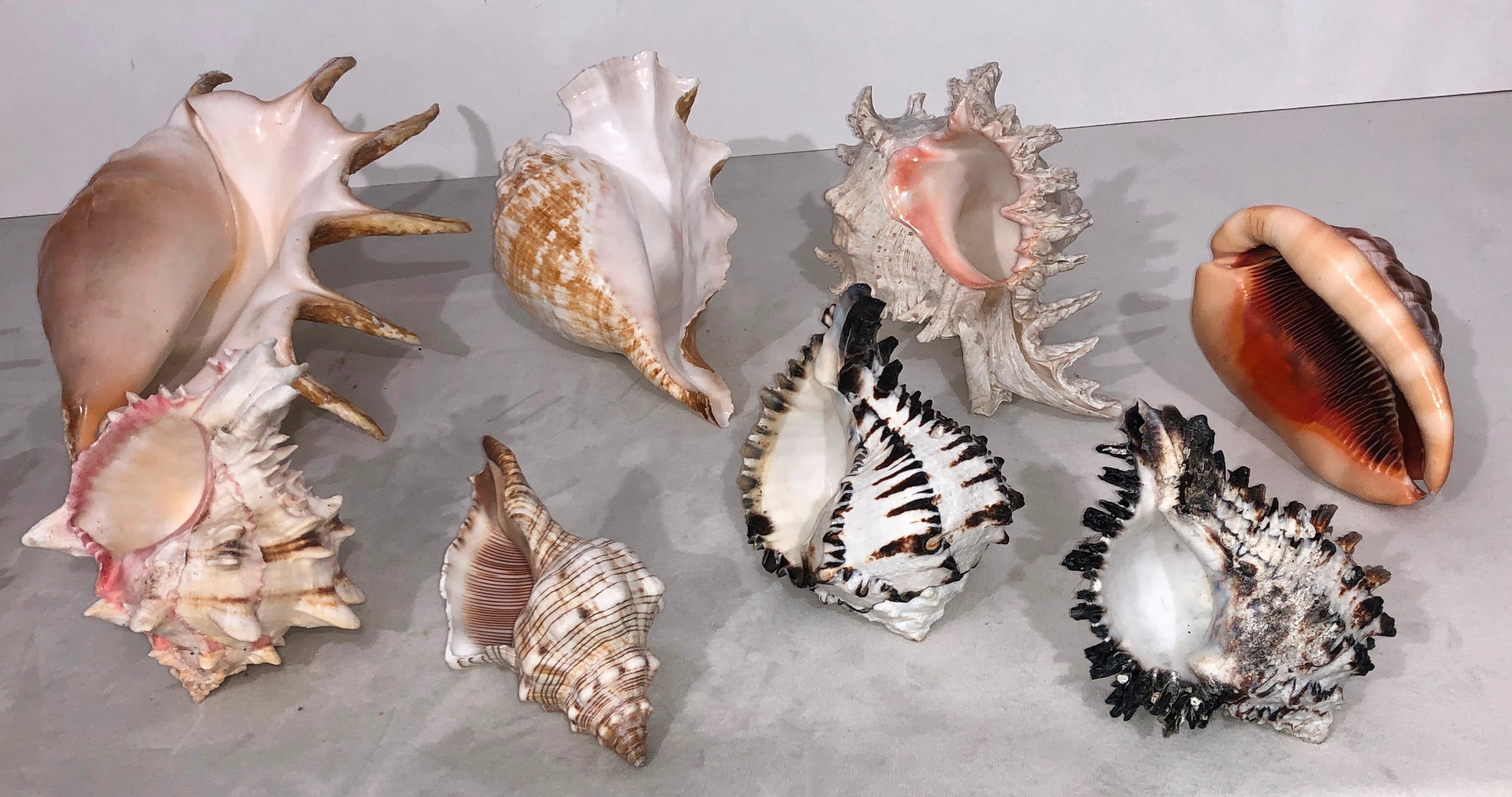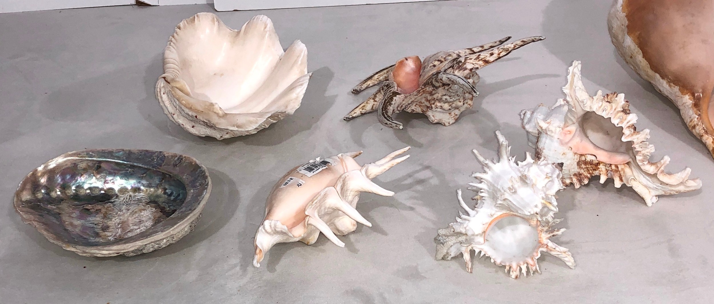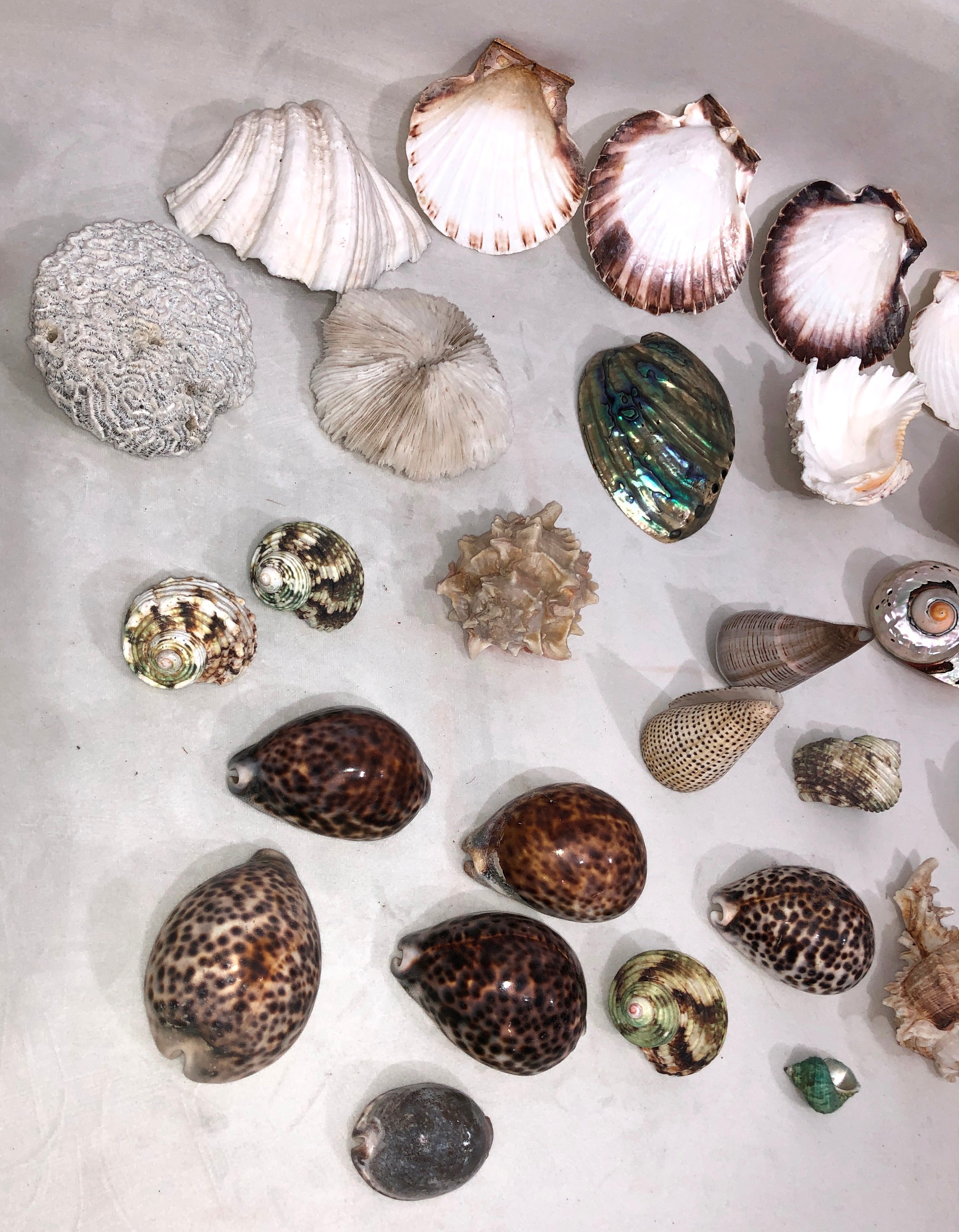 A large quantity of tropical seashells, Tiger Cowrie shells, scallop shells etc.