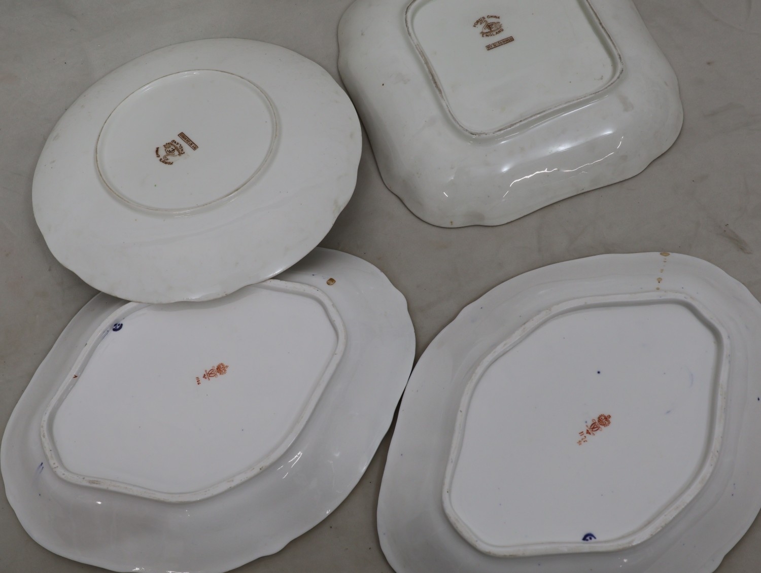 In good condition. Slight rubs to gilt detail and some surface scratches to square dish.