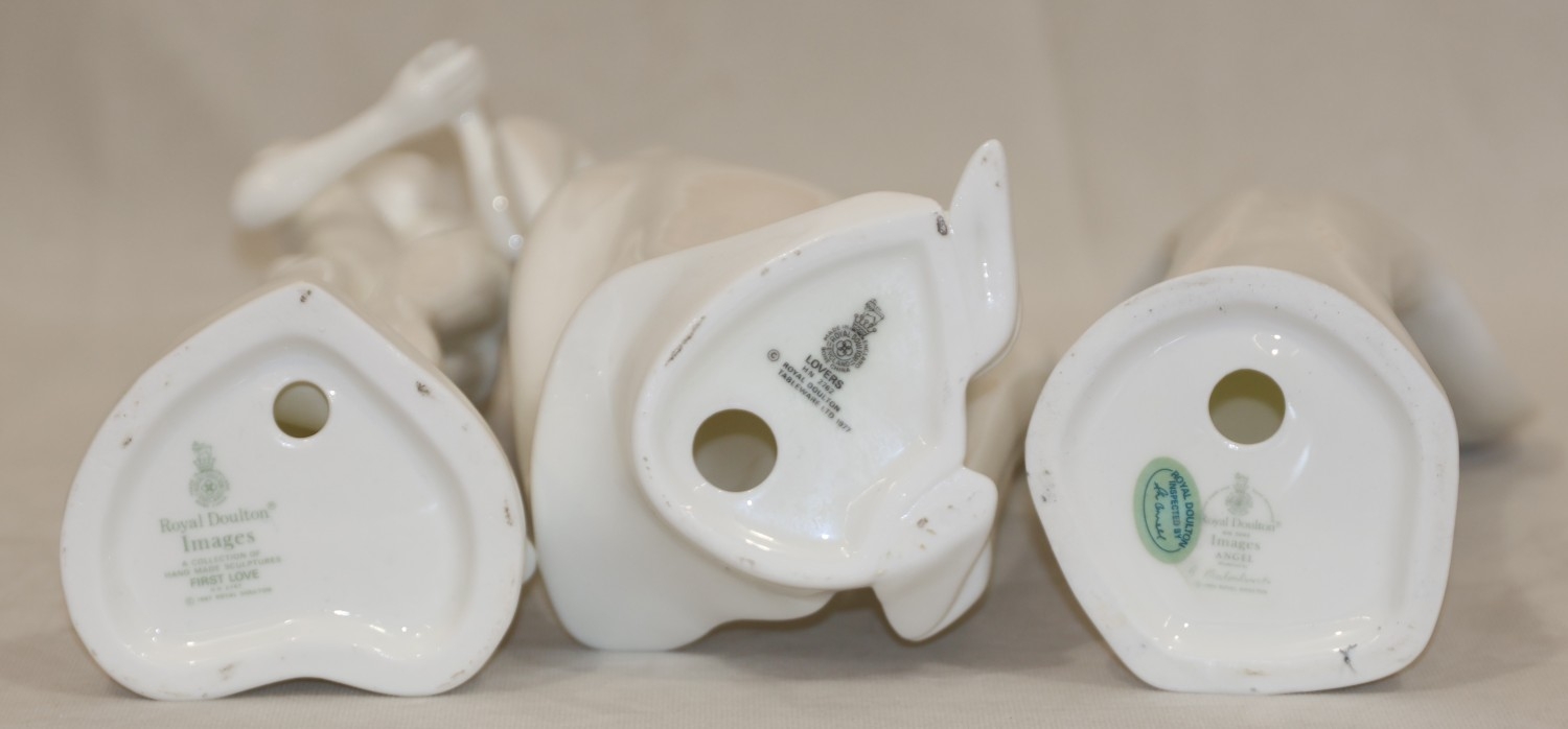 3 Royal Doulton white figurines, "Lovers, HN2762, First Love, HN2747 and Angel, HN3940" (3)