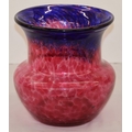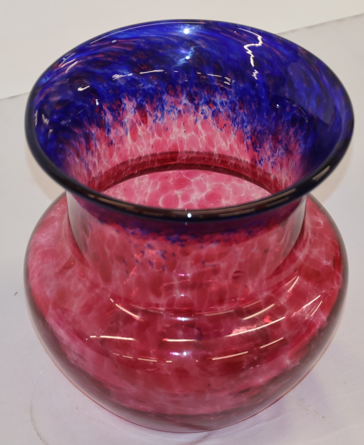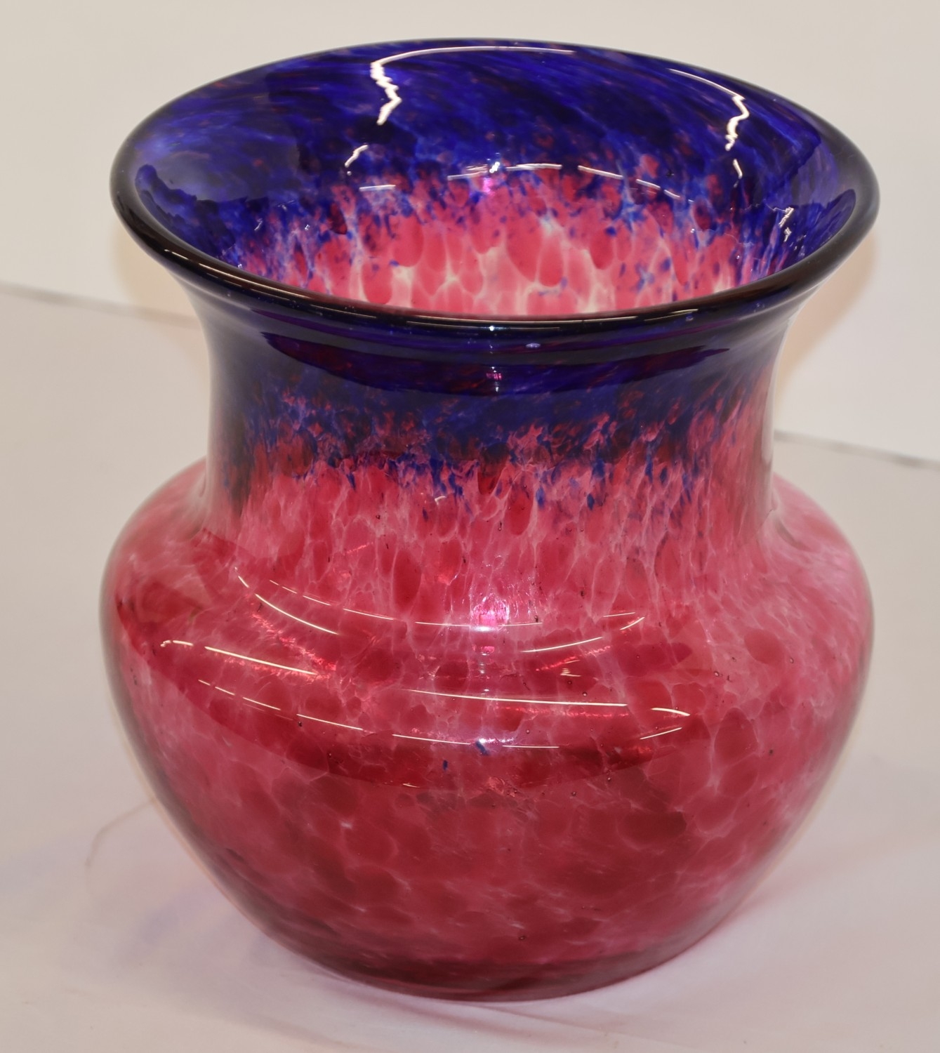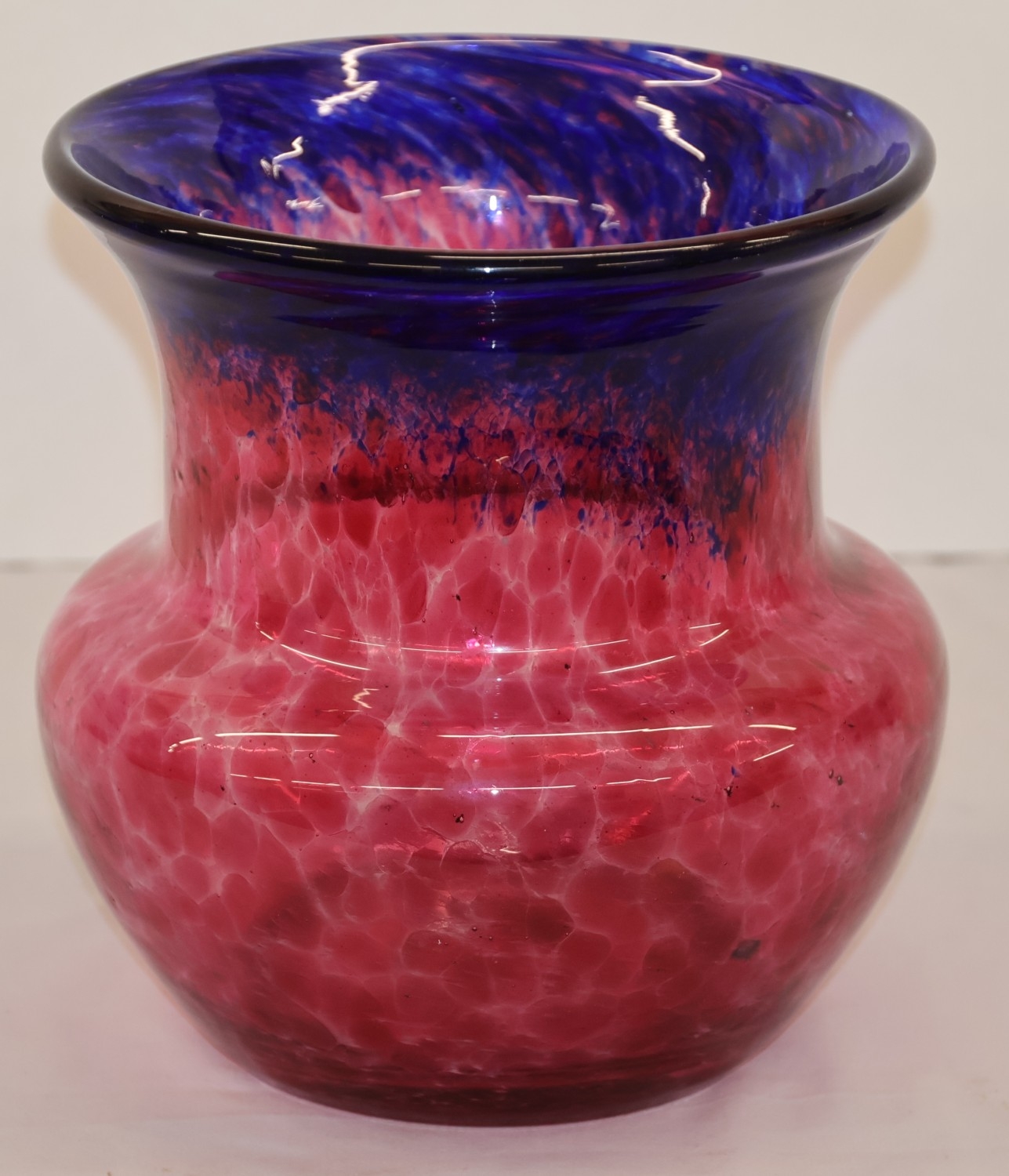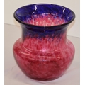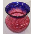 A glass round bulbous trumpet shaped vase on red and blue ground, 22cm high