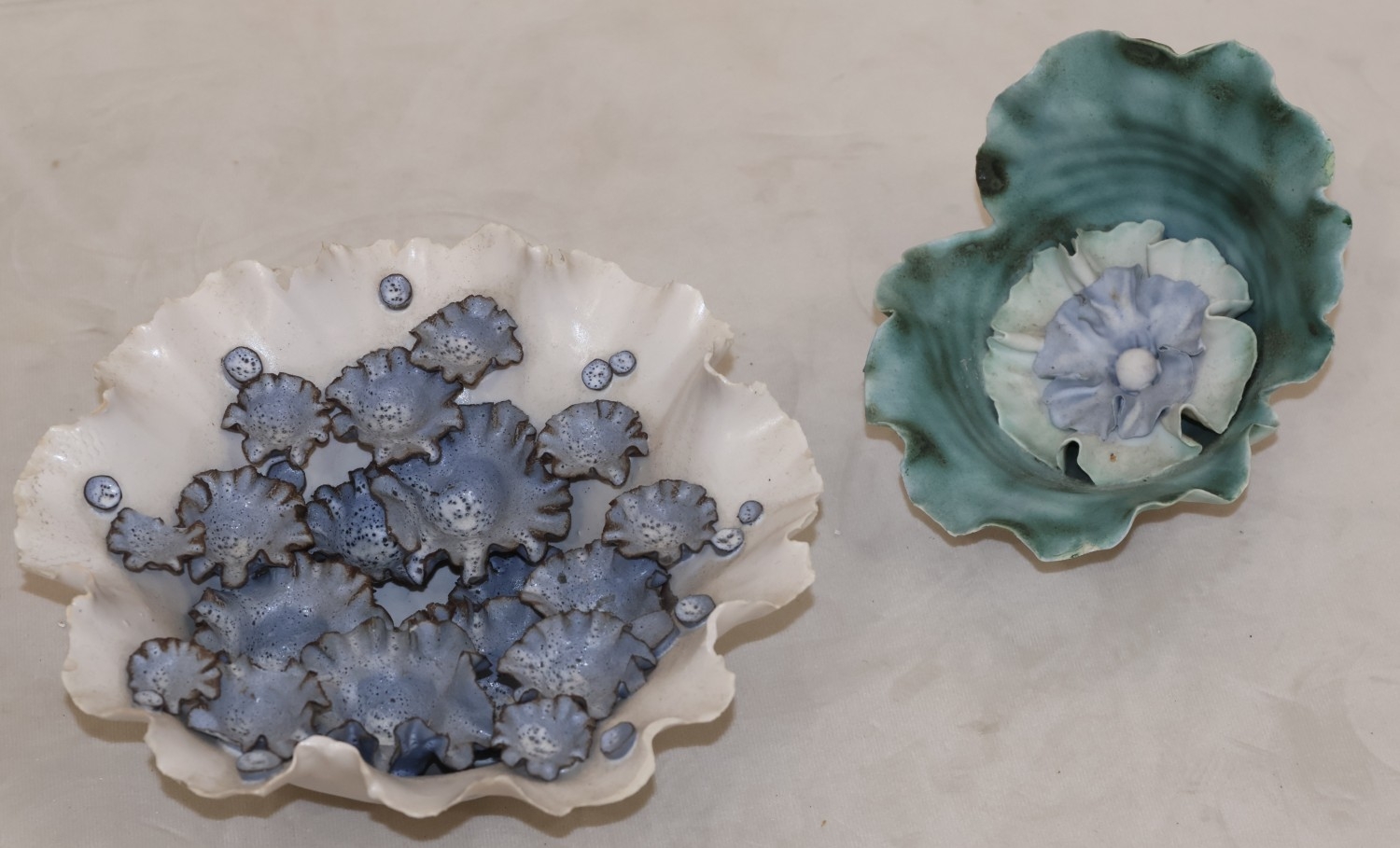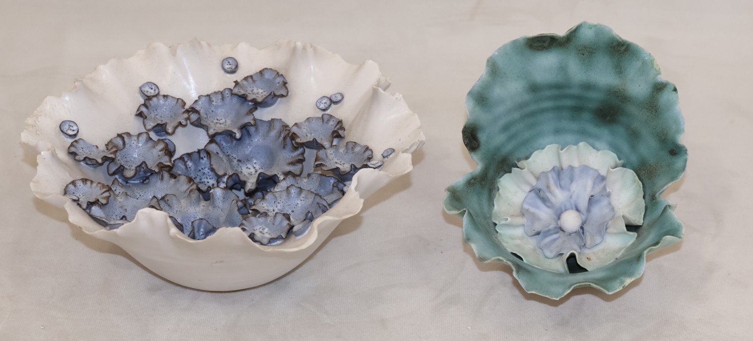 2 Chessell Pottery, Isle of Wight, stoneware bowl with encrusted floral interior, 20cm diameter and another similar floral vase, 12cm high (2)
