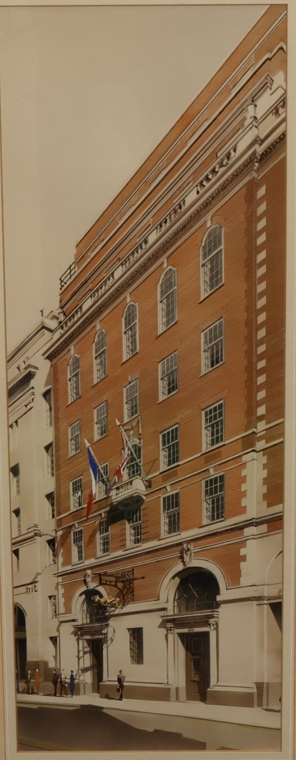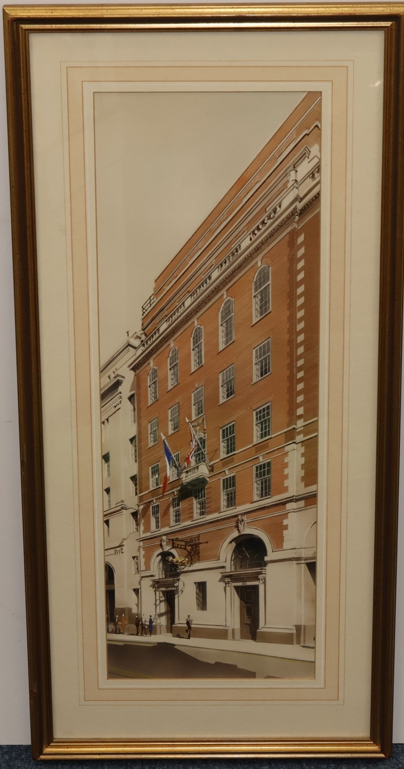 A Continental watercolour, 55cm x 19cm, "Banove Paribas", unsigned, in gilt frame