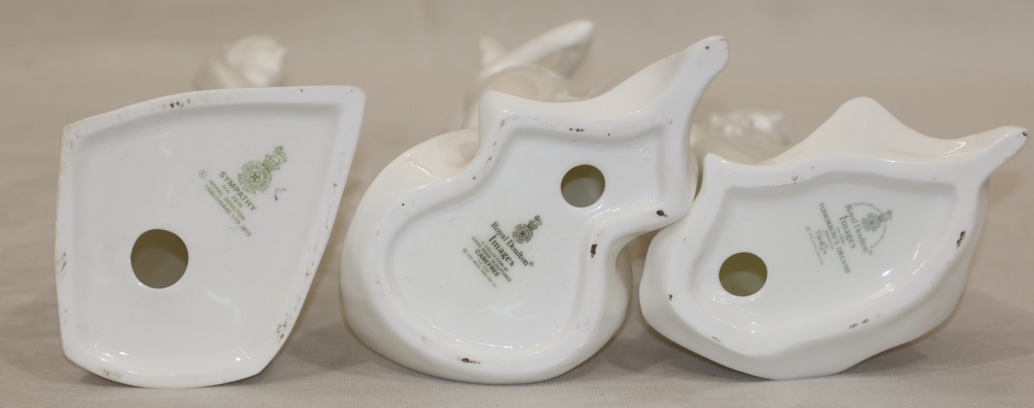 3 Royal Doulton white figurines, "Tomorrow's Dreams, HN3665, Carefree, HN3026 and Sympathy, HN2876" (3)