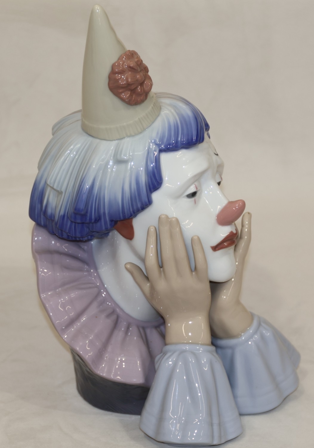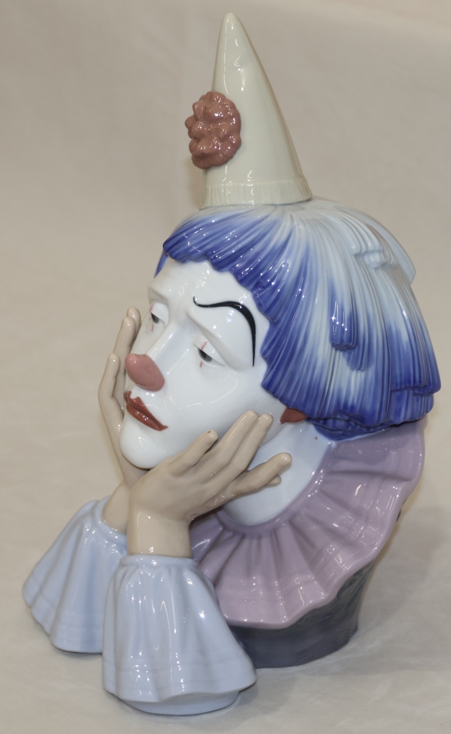 A Lladro bust of a clown resting his chin on his hands, 31.5...